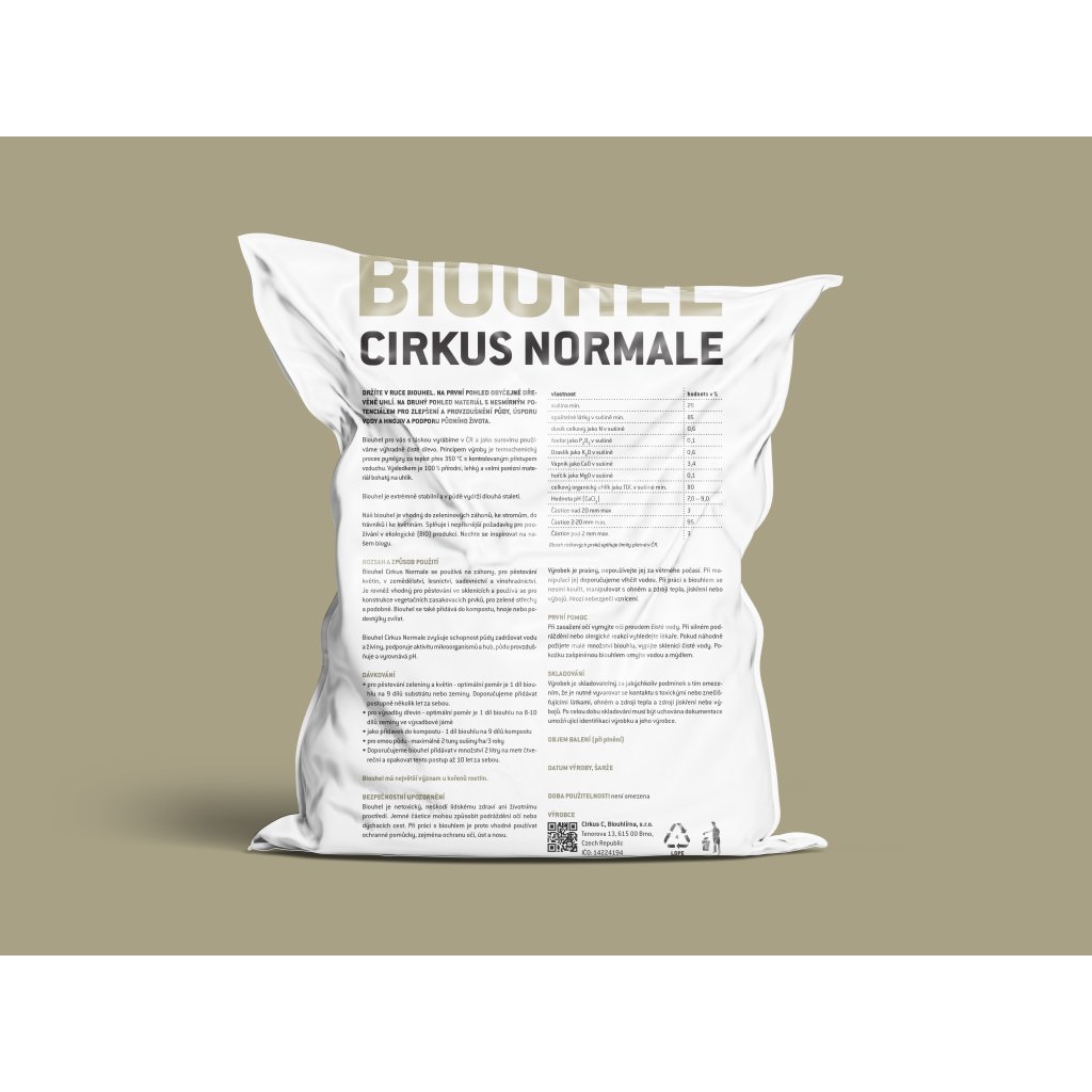 Náš biouhel Cirkus Normale je univerzální pomocník v zahradě nebo ve skleníku, je schválený pro BIO zemědělství. V půdě dokáže už při přidání 1 dílu biouhlu na 10 dílů zeminy zdvojnásobit schopnost půdy zadržovat vodu. Stejné množství biouhlu ušetří 10 % dusíkatých hnojiv a až 45 % fosforu tím, že jej naváže a zabrání jeho vyplavení nebo odpaření. Ovšem pozor - tento efekt nejspíše nezpozorujete během prvního roku, projeví se zhruba po dvou letech, kdy už budou chodbičky a mikro-prostůrky zcela zaplněny a obydleny pomocníky v podobě půdních bakterií a hub. Na tento handicap ovšem můžete vyzrát tím, že biouhel před použitím “nabijete” živinami a životem. Jak na to? Pro začátek biouhel přidejte do kompostu, smíchejte s hnojem nebo kejdou nebo použijte komerčně dostupné mikroorganismy.
