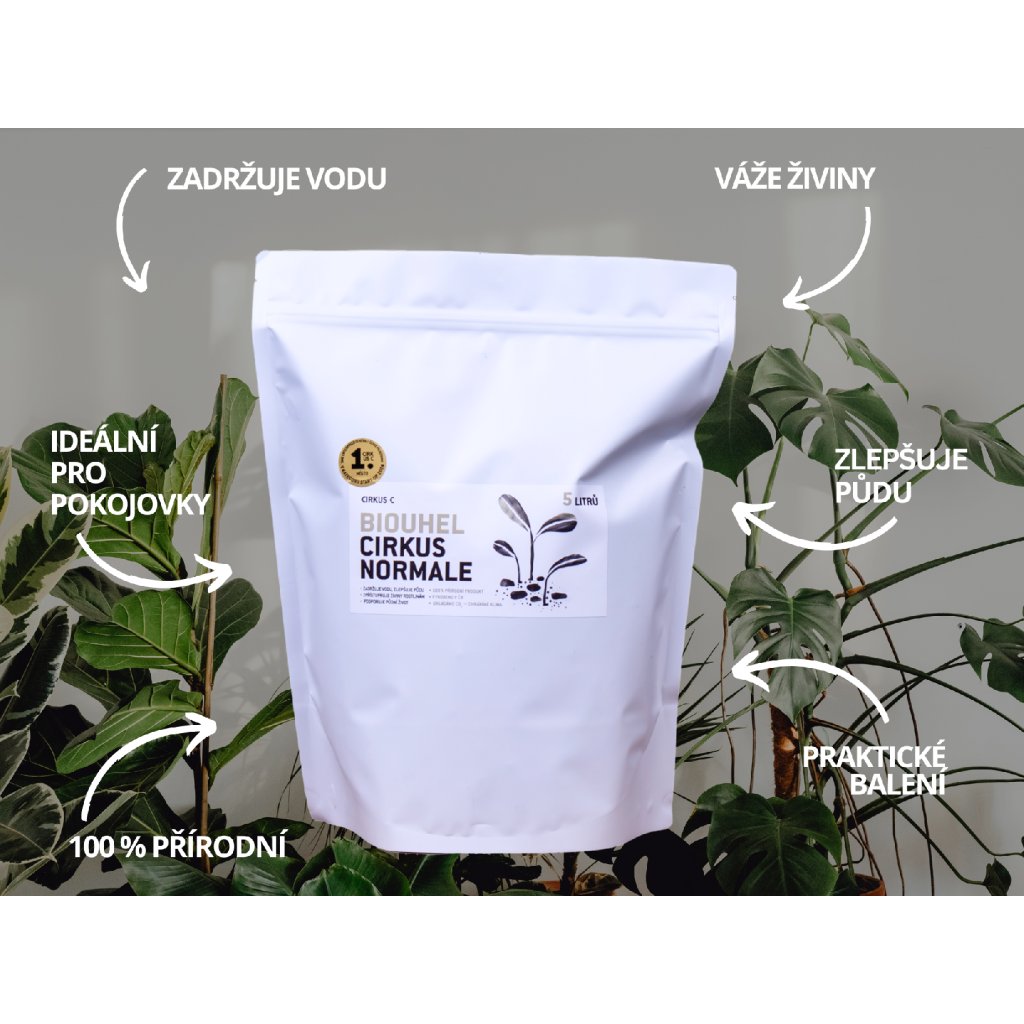 Náš biochar dodáváme v elegantním a znovuuzavíratelném balení o objemu 5 litrů. Množství vystačí na: